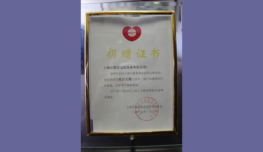 2015年,上海紅箭自動(dòng)化設(shè)備有限公司為上海市慈善基金會(huì)捐款 2015